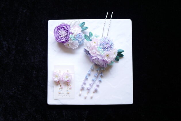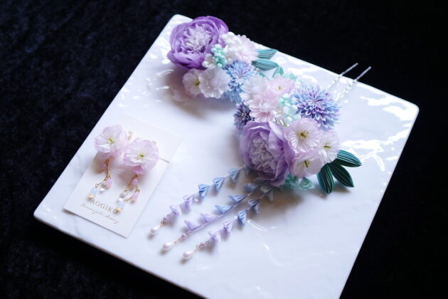 - SS-03 桔梗のコームとピアスセット ¥78,650