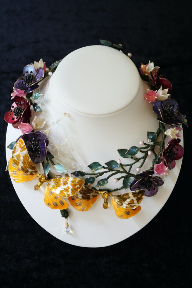 『日常をお花と共に…』をテーマにワイヤーとネイルポリッシュでお花や生き物を制作されている作家さん。