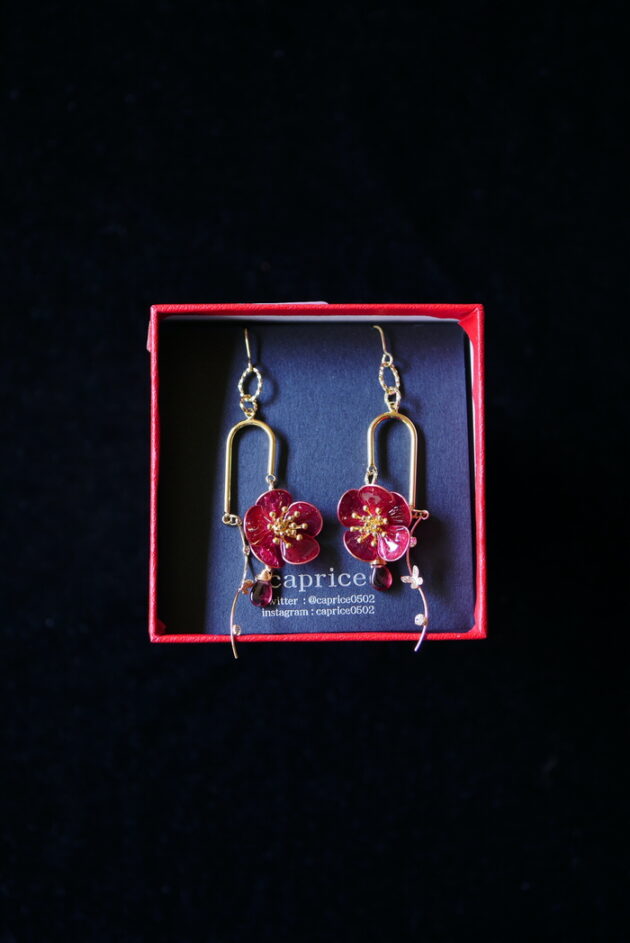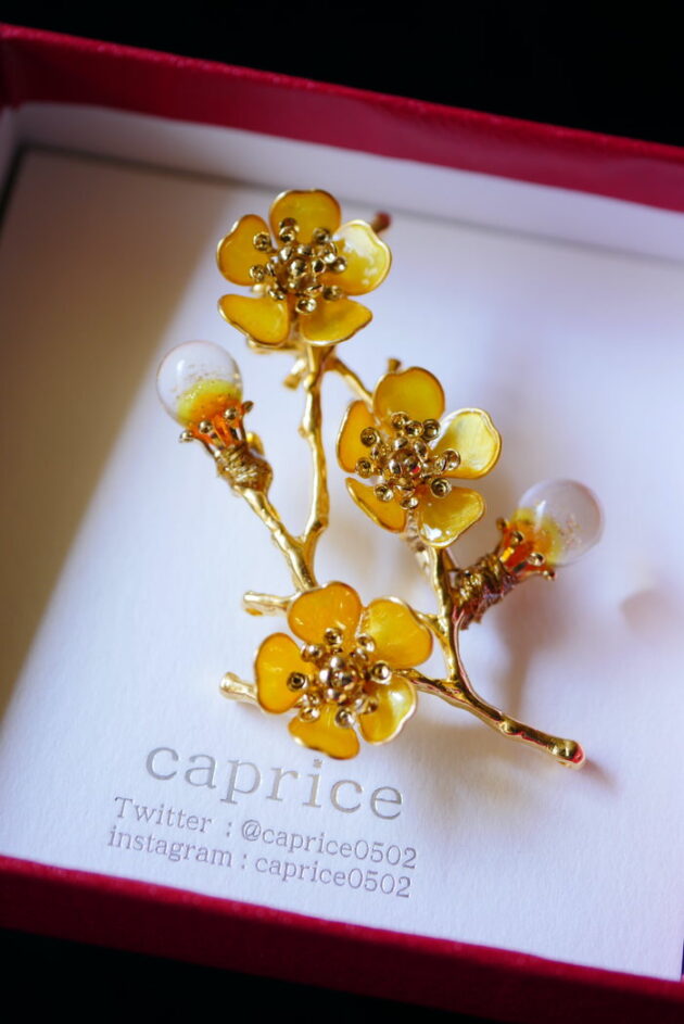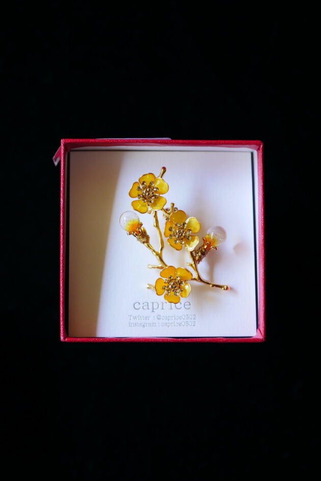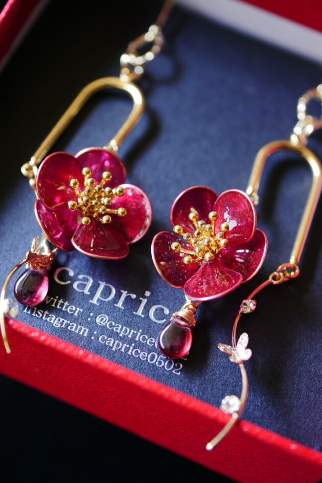 capriceさんより、素敵な色が印象的なお花のピアスとブローチが届きました!