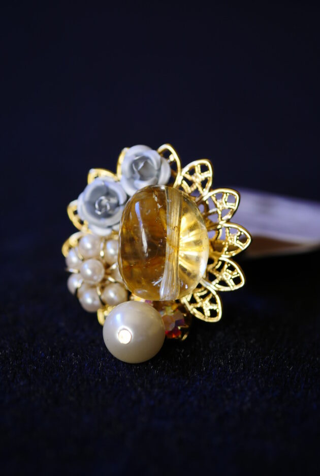 E1-3 水晶ドロップリング(黄)¥1,540