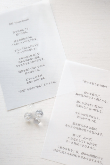 それは、誰かの日々を肯定するものだったり自分自身に本当はかけてあげたい言葉だったり、唯一無二でありながら、完璧ではないことが多い花のように私たち人間も、不完全さが愛おしいと感じる─そんなことを伝えたいアクセサリーブランドです。