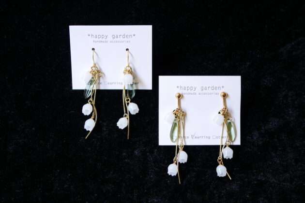 *happy garden*さんから届いた、すずらんピアス&イヤリングをご紹介します!