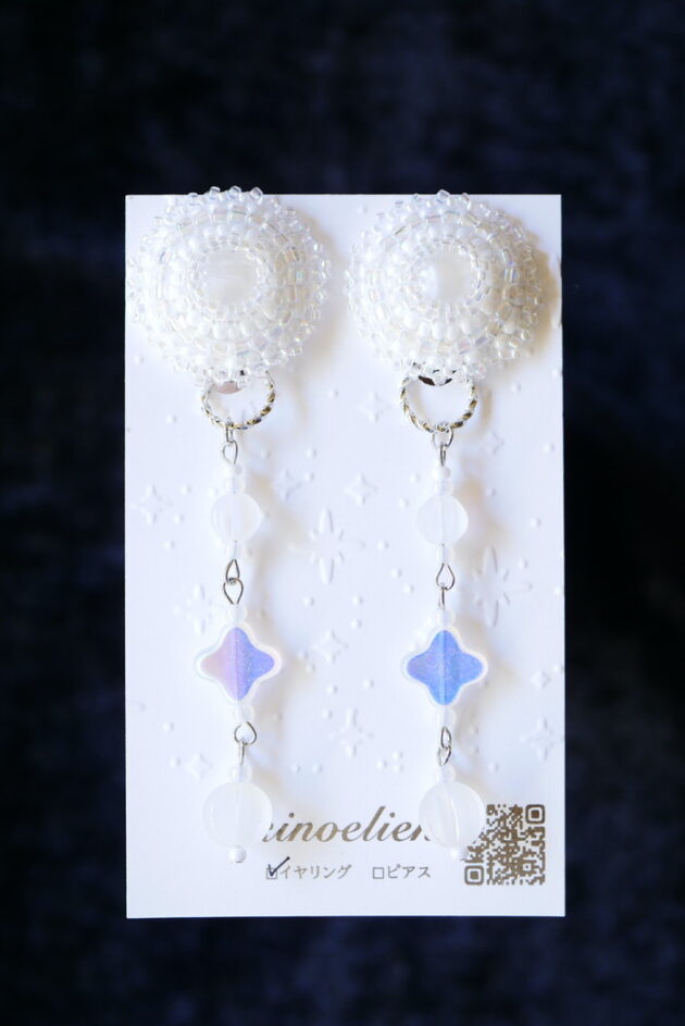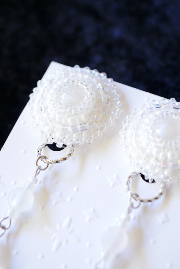 ビーズ刺繍のラウンドイヤリング。揺れるモチーフがとっても美しいのです( ⁎ᵕᴗᵕ⁎ )