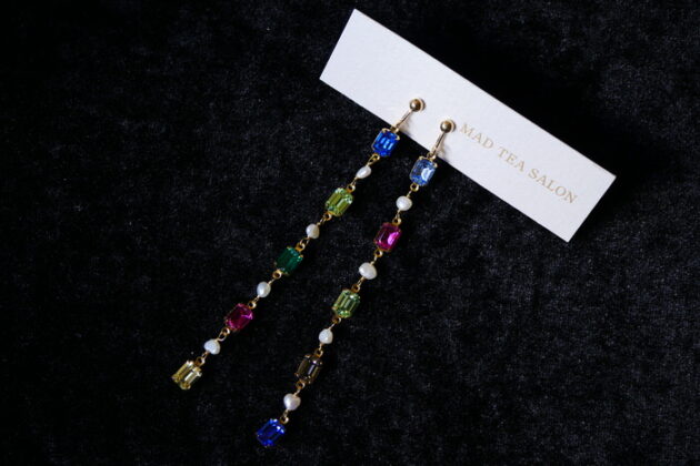 上品なカラフルビーズを使ったロングピアス。