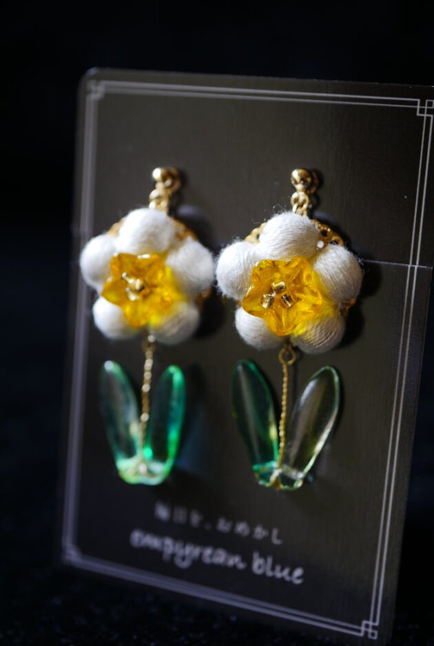 - I-116 こんもり梅の耳飾り(白梅)-ロング-(イヤリング) ¥9,570