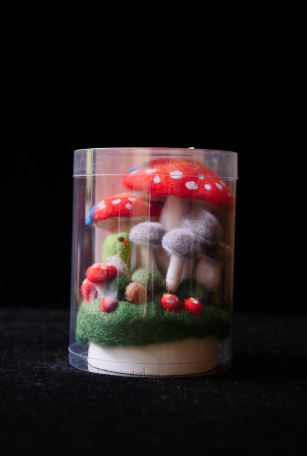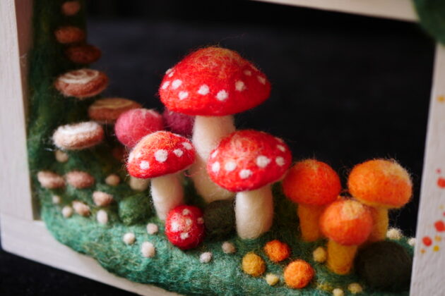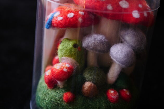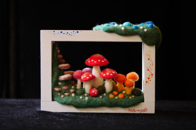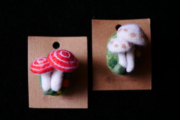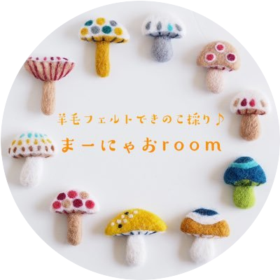 羊毛フェルトできのこ採りブローチやオブジェを制作されている、まーにゃおroomさん。