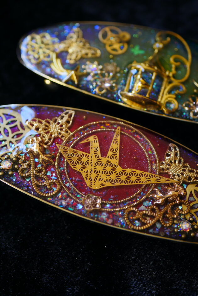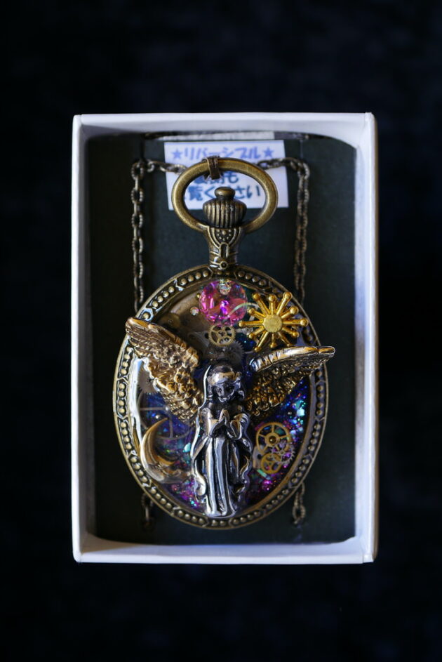 レジン、歯車などを組み合わせた1点物のアクセサリーを届けてくれます