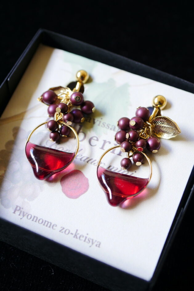 WineSRe-1.2.3.4.5.6 ワイン赤Sイヤリング ¥4,818