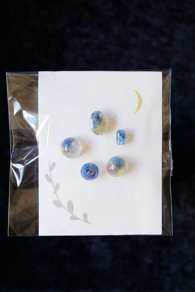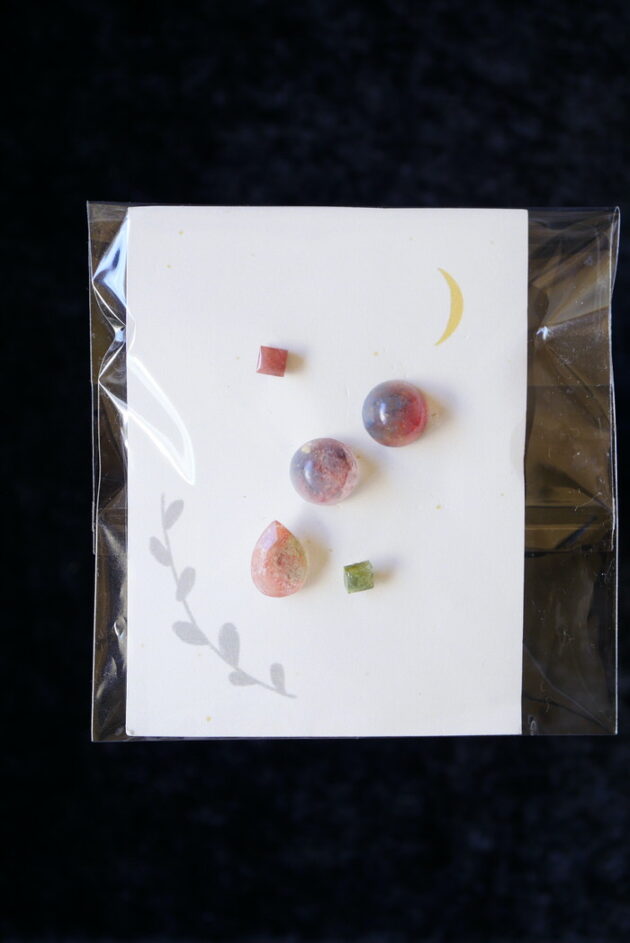 グリーンの一粒も混じっています。組み合わせを考えてつけるのも楽しいですね( ⁎ᵕᴗᵕ⁎ )